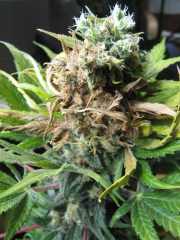 The above plant yielded over an ounce of dried, cured bud from a soil grow in a one gallon container. I didn’t top the plant at all (which could have increased the yield) since I was growing several of these at once looking for different phenotypes. I was very pleased with the results, and would definitely recommend this strain to any grower – novices and cracks alike – who want a vigorously growing, pest resistant plant that produces a great smoke with a balance of flavor, resin, and kick.
